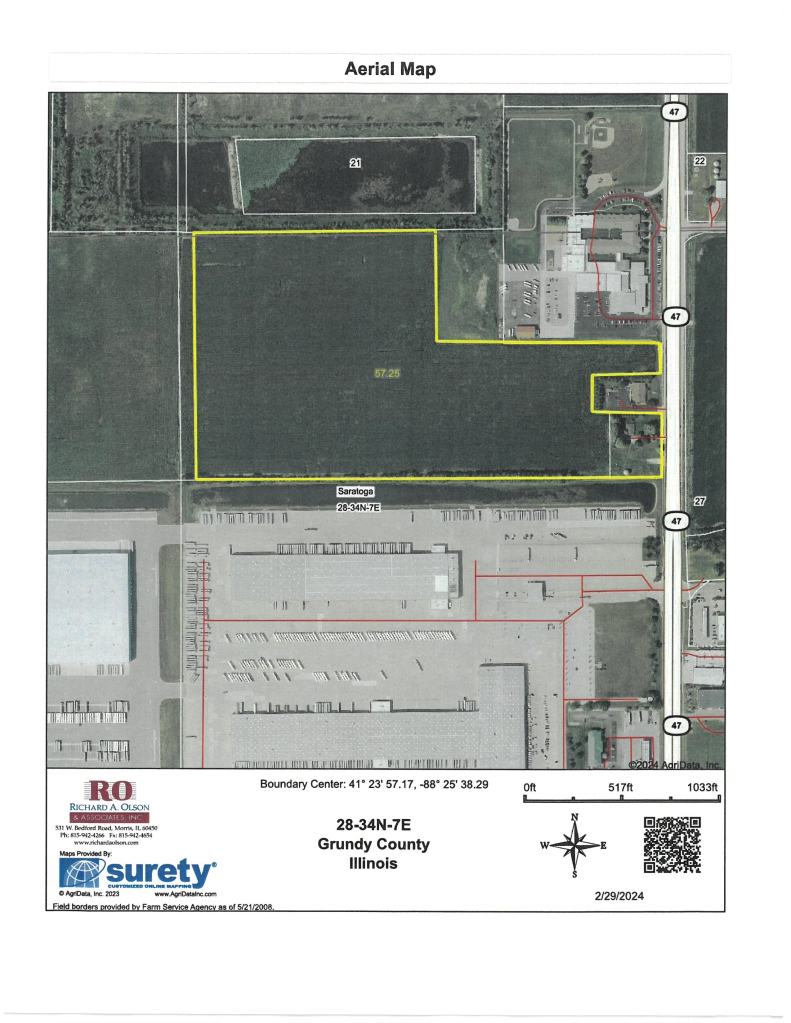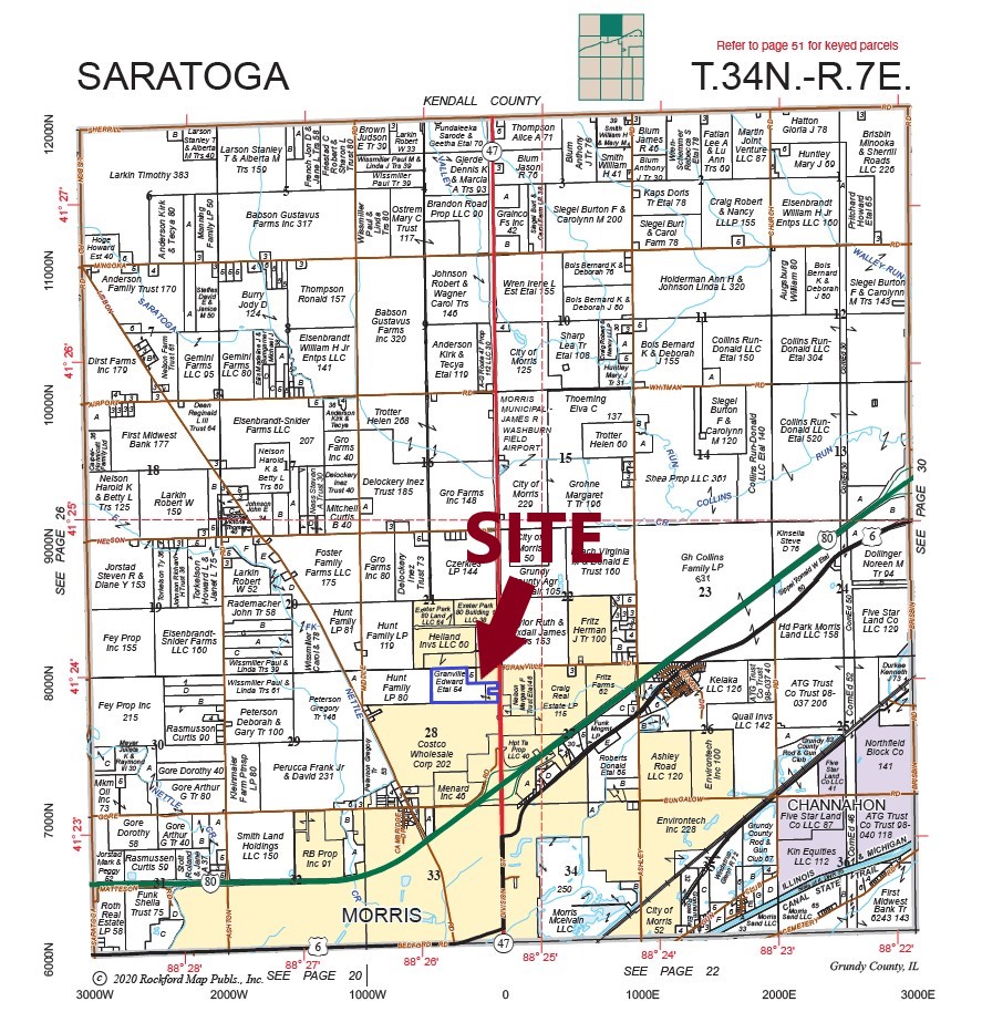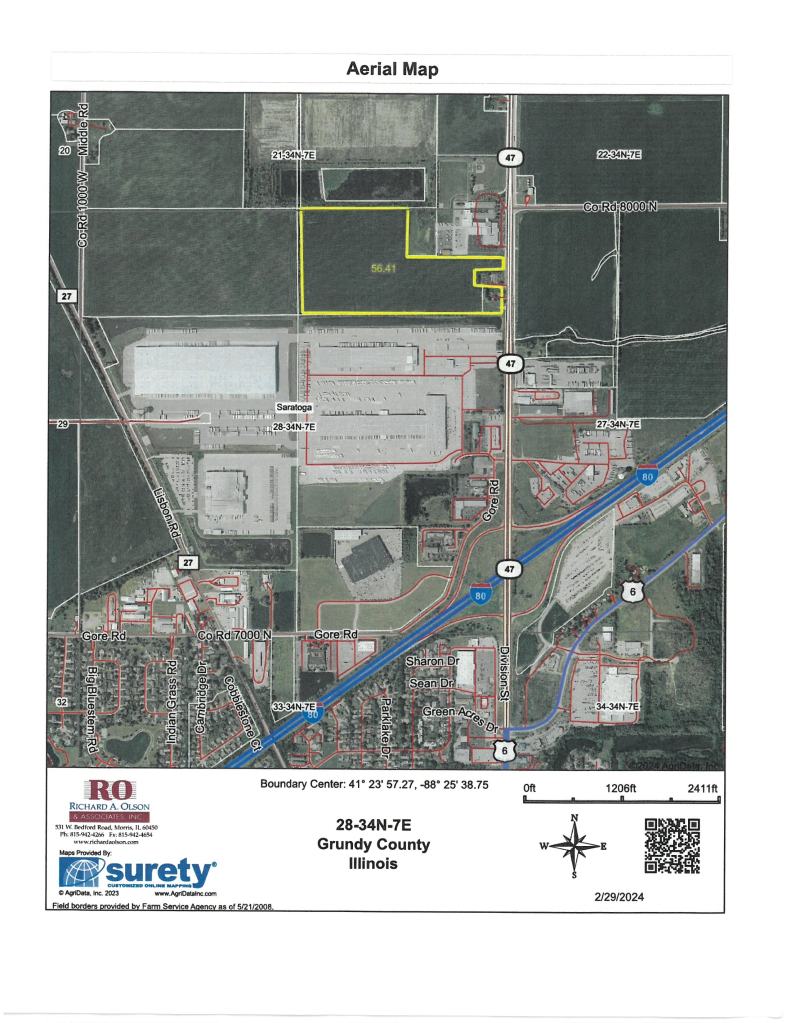 Over 53 acres within the mixed commercial use area just north of the Rt 47 and I-80 interchange in Morris, IL. It has over 350′ of frontage on Rt 47 with potential use as retail, commercial, or possible warehouse use. A private residence is included in the property.
